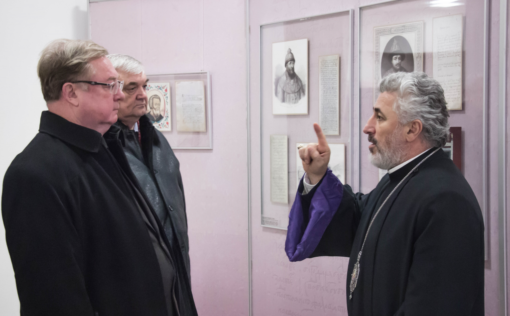 Сергей Степашин, первый помощник Председателя ИППО Георгий Веренич, начальник отдела Центра ИППО Самвел Казарян в сопровождении архиепископа Езраса осмотрели музей, храмовый комплекс, памятник императору Николаю II – почётному члену ИППО.