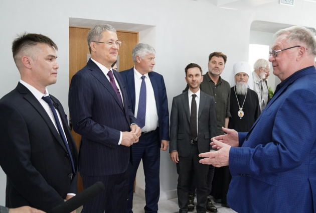 Далее Глава Башкортостана и почётные гости церемонии осмотрели обновлённые помещения исторического здания. Здесь организовали комфортную атмосферу для творческого развития молодёжи и проведения различных тематических мероприятий.