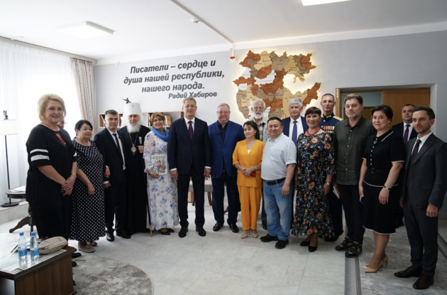 – Сегодня мы открываем после ремонта дом Союза писателей. Это наша благодарность тем людям, чьё творчество является достоянием республики. Союз писателей Башкортостана создали в 1934 году. Он объединяет людей, которые являются выразителями мудрости нашего народа. И, конечно, они хранят традиции, которые были заложены в том числе писателями – ветеранами Великой Отечественной войны, – подчеркнул Радий Хабиров. – Выражаю вам особую признательность за цикл литературно-патриотических акций «СВОих не бросаем» в поддержку участников специальной военной операции и их семей. Многие из вас не раз были на передовой. По итогам таких поездок выходят новые произведения, посвящённые подвигу наших земляков, – повести, рассказы, стихи. Спасибо вам за это большое!