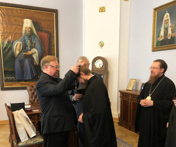 В ходе визита Сергей Степашин торжественно вручил членские билеты и знаки ИППО представителям Академии, вступившим в ряды Общества: ректору епископу Звенигородскому Феодориту, заведующему Библейским кабинетом протоиерею Александру Тимофееву, директору Издательства диакону Дмитрию Серову.