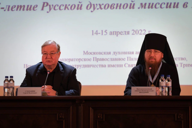 15 апреля 2022 года в рамках международной научной конференции «Россия и Святая Земля: 175-летие Русской духовной миссии в Иерусалиме» Московскую духовную академию посетил Председатель Императорского Православного Палестинского Общества Сергей Степашин.