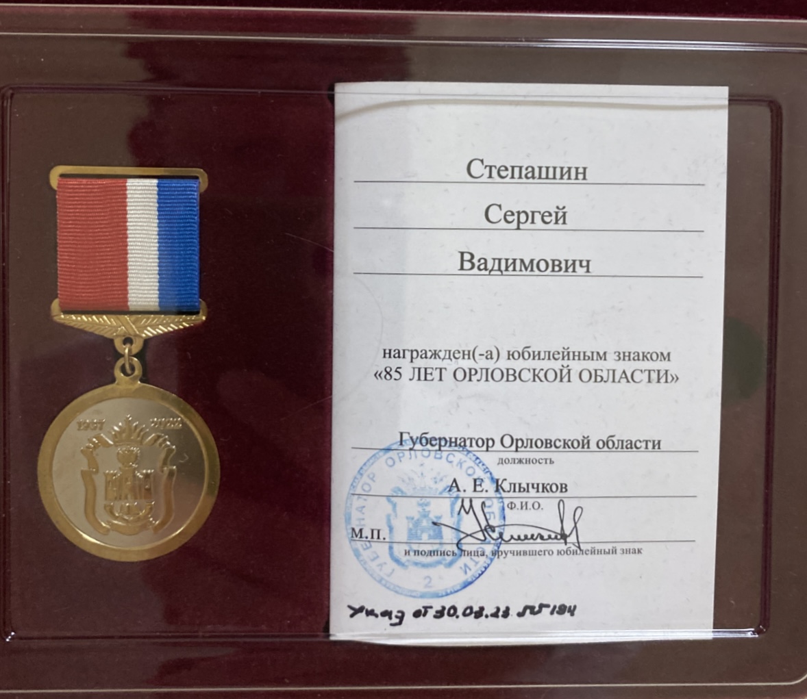 Глава региона Андрей Клычков вручил Сергею Степашину юбилейную медаль «85 лет Орловской области». Также Председателю ИППО была подарена недавно вышедшая в свет книга «Выпускники и преподаватели Орловского бронетанкового училища – Герои Великой Отечественной войны».