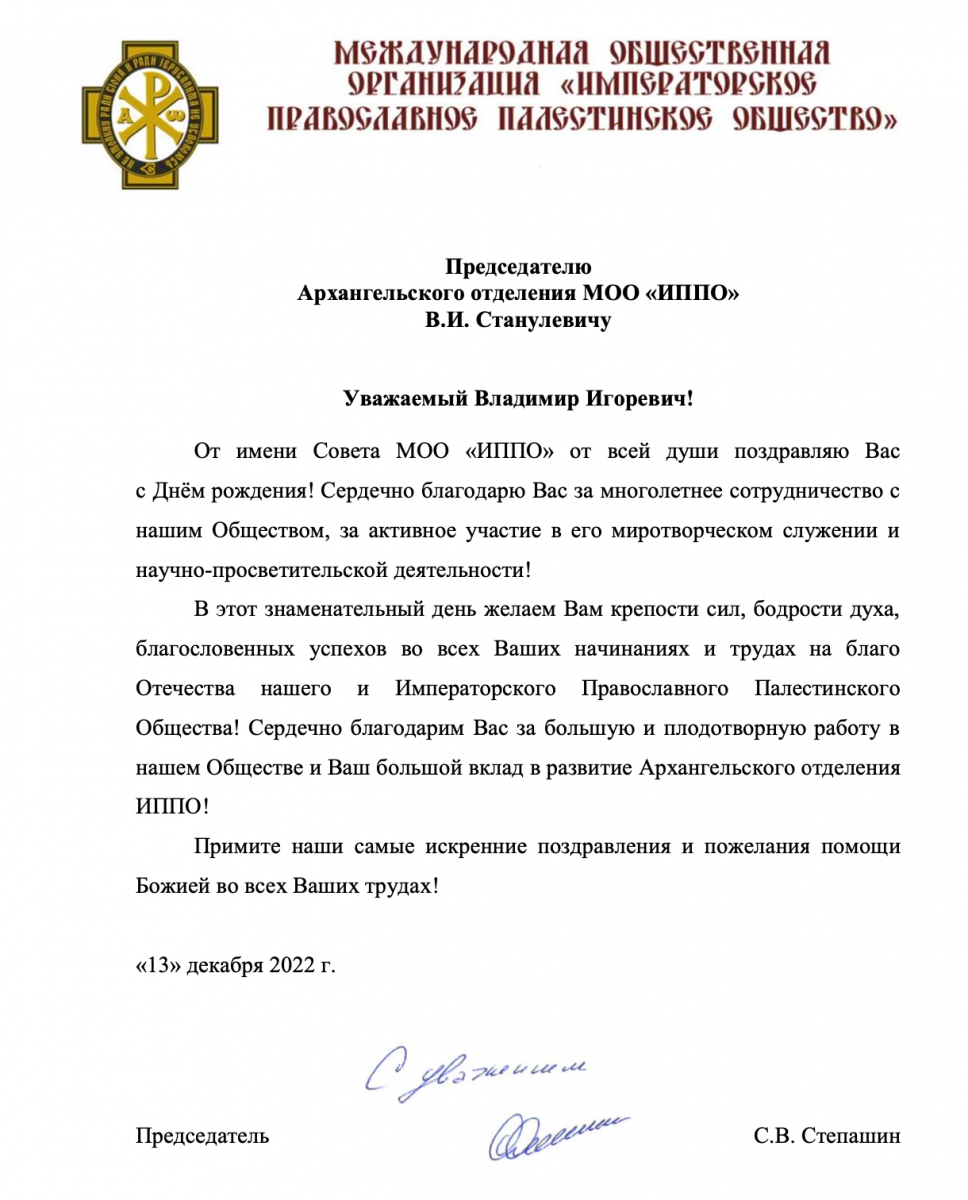 13 декабря день рождения отмечает руководитель Архангельского отделения ИППО Владимир Станулевич.