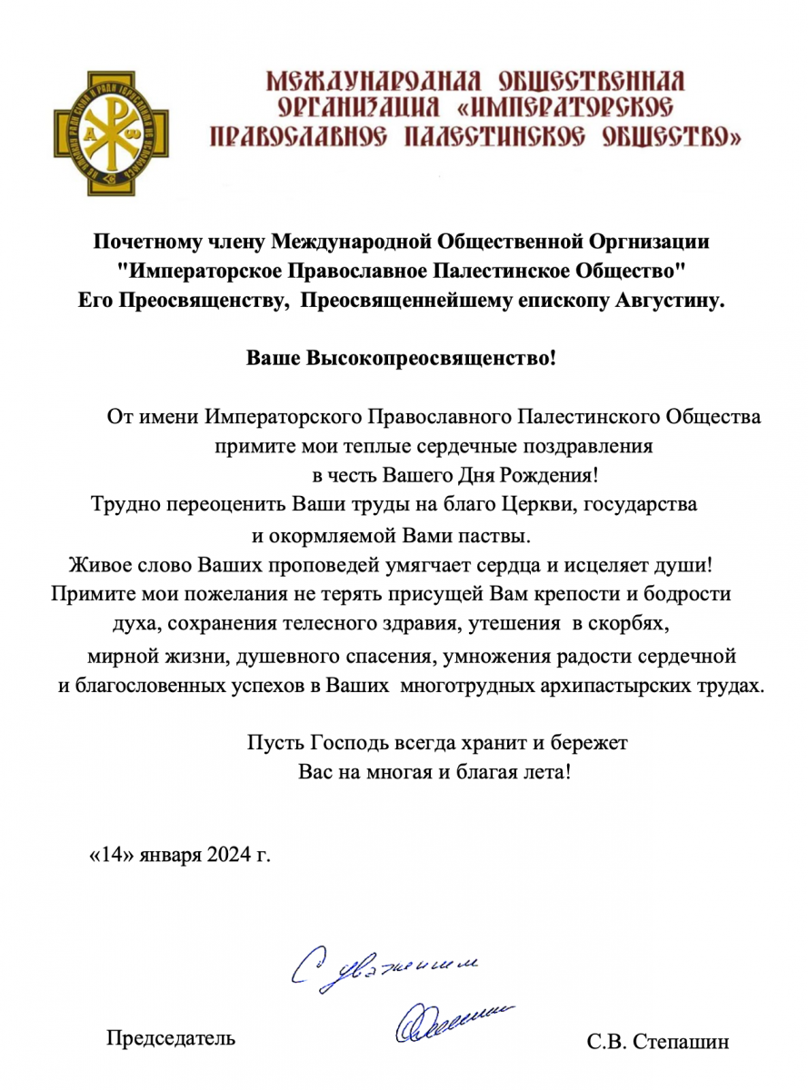 Сегодня день рождения у Почетного члена Императорского Православного Палестинского Общества епископа Августина.