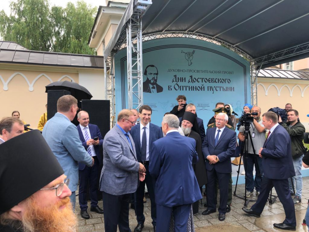 Губернатор Калужской области Владислав Шапша рассказал об актуальности вопросов, поднимаемых в творчестве писателя, в котором есть ответы на все вопросы современности. Он сказал, что регион готов оказать всестороннюю поддержку проекта «Дни Достоевского в Оптиной пустыни», который способен стать визитной карточкой края.