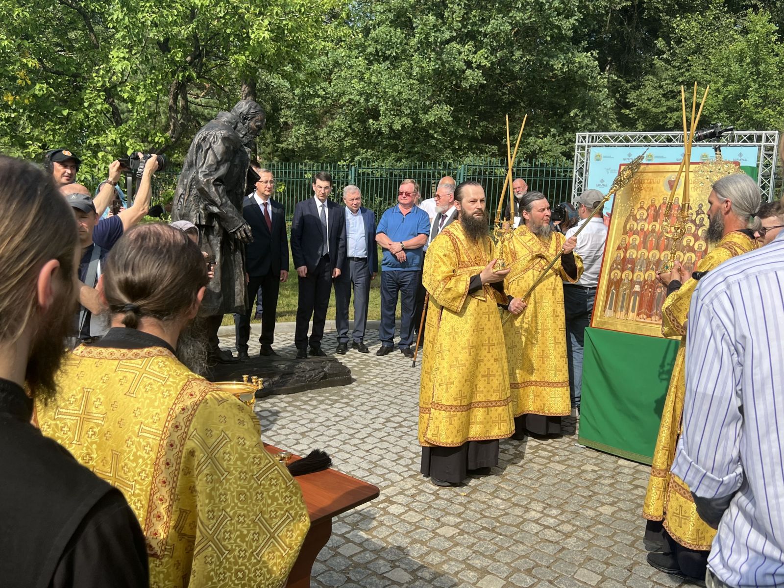 Затем состоялось торжественное открытие памятника, после которого наместником Оптиной пустыни епископом Можайским Иосифом был отслужен молебен преподобным старцам Оптинским.