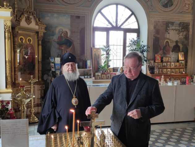 10 мая 2022 года в храме святых мучениц Веры, Надежды, Любови и Софии прошла встреча Председателя ИППО Сергея Степашина с руководителем Представительства Общества в Казахстане митрополитом Астанайским и Казахстанским Александром.