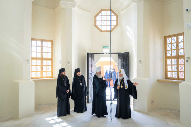 Пояснения Святейшему Патриарху Кириллу при осмотре музея и Тихвинской церкви давал митрополит Каширский Феогност.