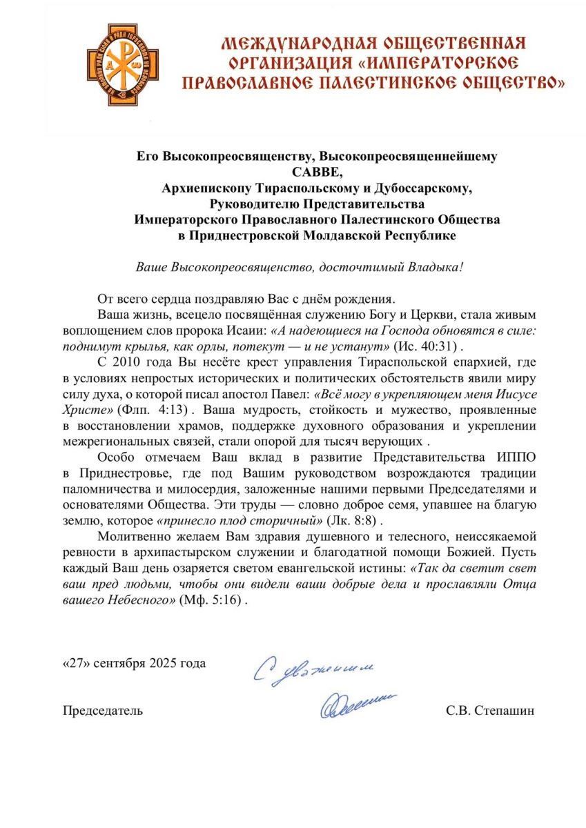 27 сентября день рождения отметил правящий архиерей Тираспольской епархии, руководитель Тираспольского отделения ИППО, архиепископ Тираспольский и Дубоссарский Савва.