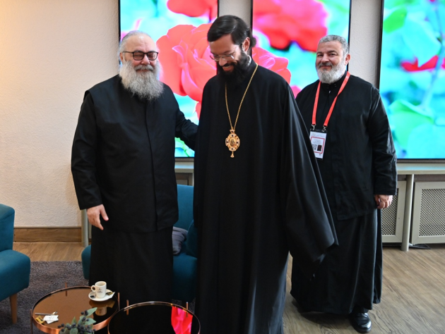 Во встрече также приняли участие митрополит Германский и Центрально-Европейский Исаак (Антиохийская Православная Церковь) и исполняющий обязанности заместителя председателя Отдела внешних церковных связей Московского Патриархата протоиерей Игорь Якимчук.