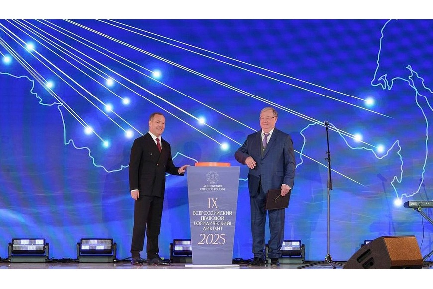 Председатель Попечительского совета АЮР Дмитрий Медведев и председатель Ассоциации юристов России Сергей Степашин дали старт IX Всероссийскому правовому (юридическому) диктанту