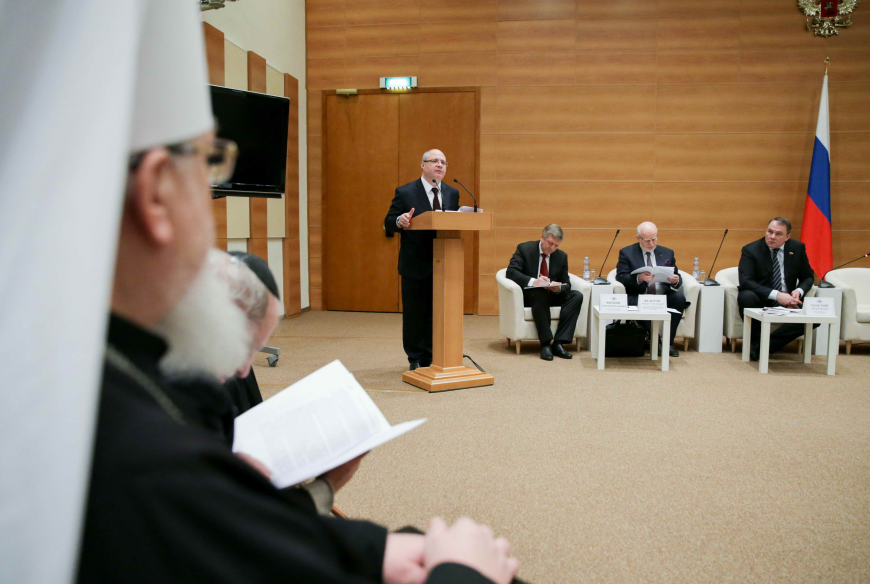 На круглом столе всесторонне обсудили практику реализации Федерального закона «О свободе совести и о религиозных объединениях» и предложения по его совершенствованию с учётом существенного повышения роли религиозных организаций, в первую очередь, относящихся к традиционным конфессиям, в сохранении духовно-нравственной основы российского общества.