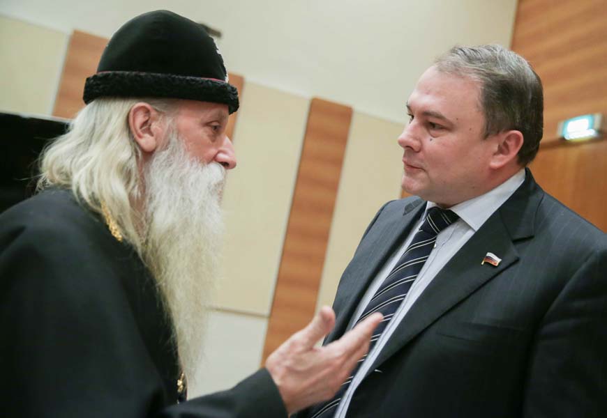 Митрополит Московский и всея Руси Русской Православной Старообрядческой Церкви Корнилий заявил, что «в стенах Государственной Думы решаются судьбы русского народа». Задавшись вопросами о свободе совести «кого и от кого», он заявил, что свобода должна быть, прежде всего, от греха. Митрополит призвал к консолидации общества, миру и любви в ситуации, с которой, по русской пословице, процитированной им, столкнулась Россия, когда «забыли Бога и война стоит у порога», говоря о нападках Запада и событиях на Украине.