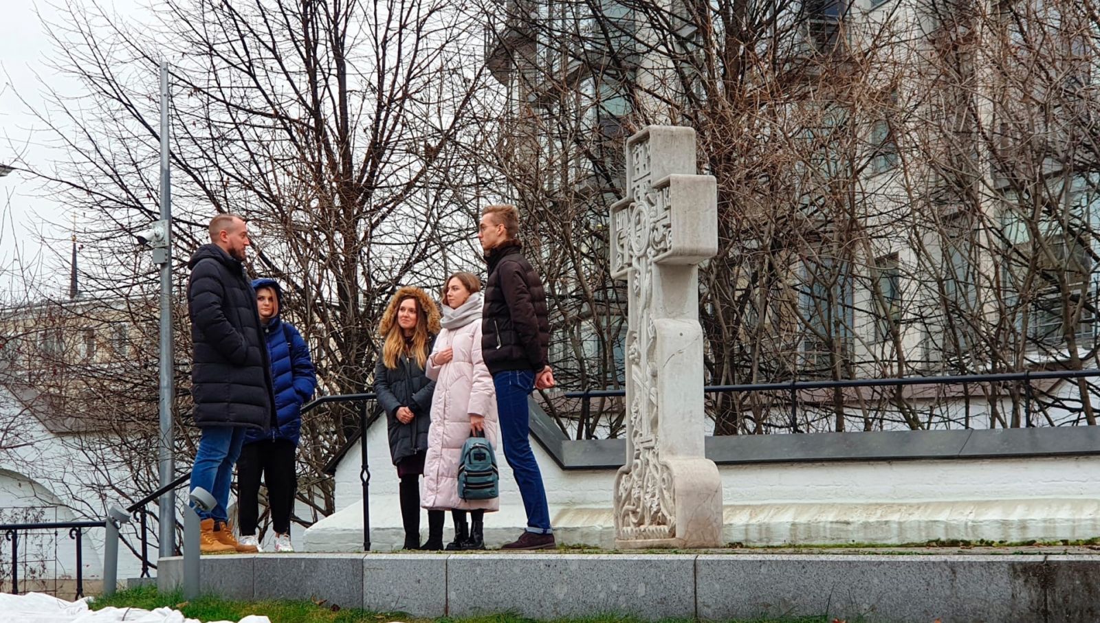 Подойдя ещё раз к памятнику святой преподобномученицы Великой княгини Елисаветы, работы Вячеслава Клыкова, который был установлен у северной стены Покровского собора в 1990 году, члены Молодёжной секции Общества обсудили роль Великой княгини в формировании ансамбля обители. Речь шла и о её влиянии на творчество Алексея Щусева, Михаила Нестерова, Павла Корина и Сергея Конёнкова, для которого, после создания на северной стене Покровского храма Распятия, образ Христа стал одной из главных тем в творчестве.