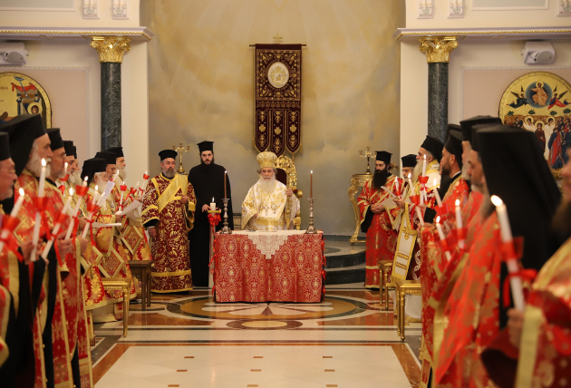 Чтение Евангельского отрывка на церковнославянском языке совершил начальник Русской духовной миссии в Иерусалиме архимандрит Вассиан.
