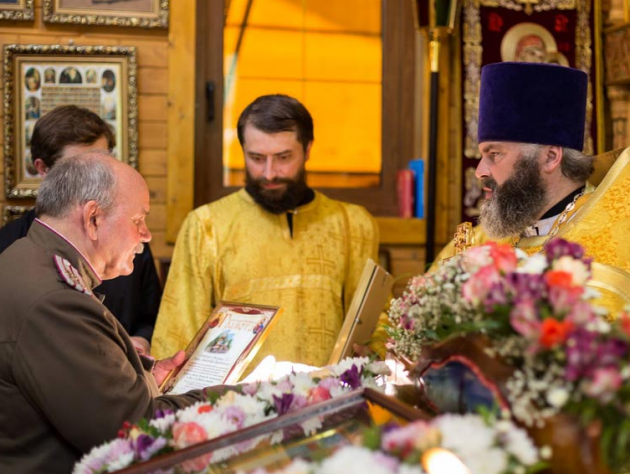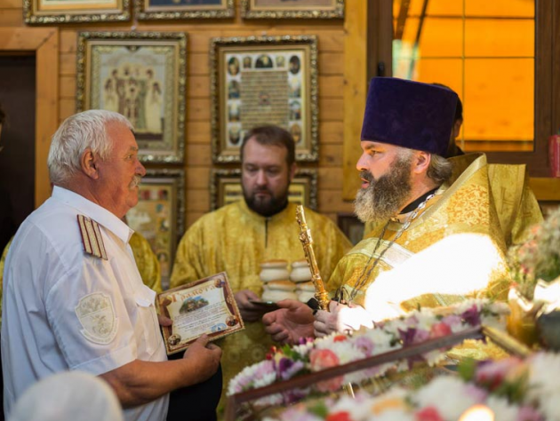 Отец Марк поблагодарил всех за молитвенное участие в праздничной службе, поздравил именинников с днём Ангела, а присутствующих в храме представителей казачества, Росгвардии и МВД – с днём памяти их небесного покровителя, святого равноапостольного князя Владимира. Батюшка вручил Благодарственные грамоты потрудившимся в деле благоукрашения храма.