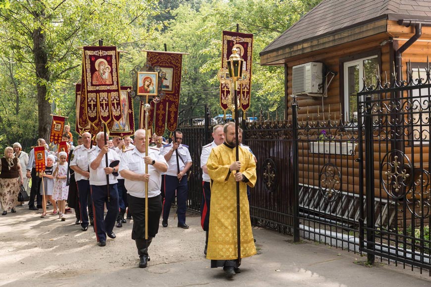 Праздничные богослужения совершил настоятель храма, войсковой священник Центрального казачьего войска иерей Марк Кравченко в сослужении клириков храма. Чтобы молитвенно разделить с духовенством и прихожанами радость праздника, в храм прибыли Верховный атаман Союза казаков России Павел Задорожный; Первый верховный атаман Союза казаков России Александр Мартынов; атаман Московского казачьего округа Союза казаков России Василий Зайцев; председатель Московского областного регионального отделения Императорского Православного Палестинского Общества Юрий Смирнов; мэр города Бронницы Виктор Неволин; председатель совета стариков Центрального казачьего войска Георгий Бухтияров; полковник МВД РФ Игорь Назаренко; помощник атамана ВКО ЦКВ по вопросам культурно-просветительской деятельности Дмитрий Иванов; атаман Станичного казачьего общества городского округа Железнодорожный казачий полковник Николай Селин; представители районной администрации, Росгвардиии, МВД и иных силовых ведомств, реестровых казачьих обществ и общественных объединений казачества.