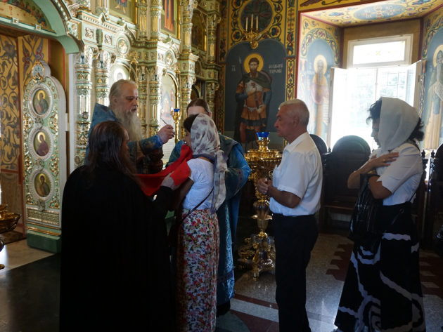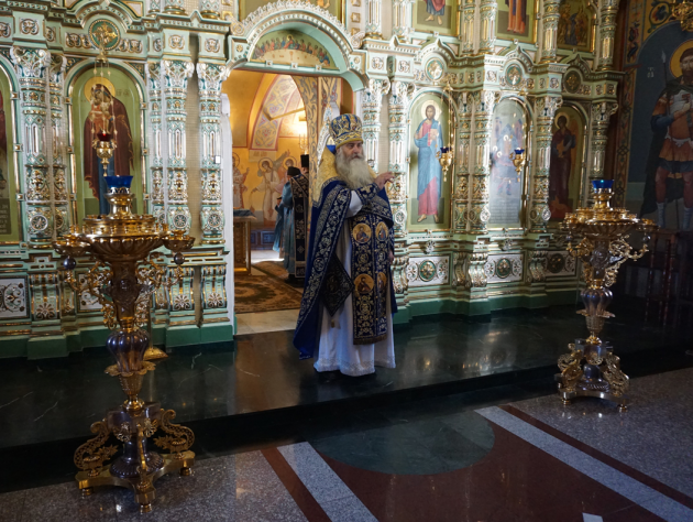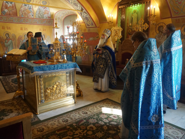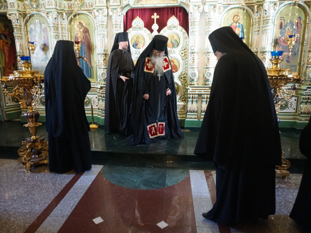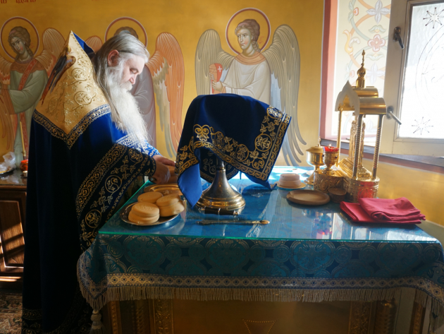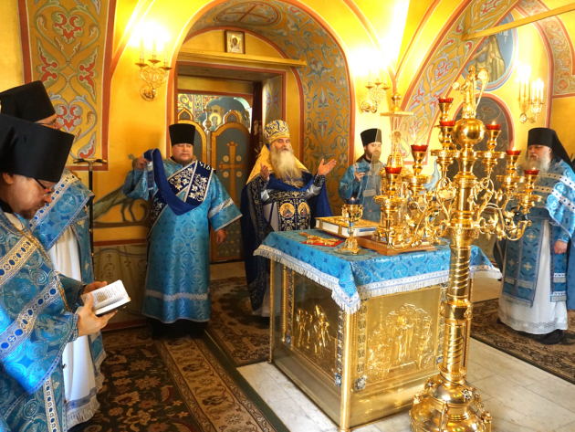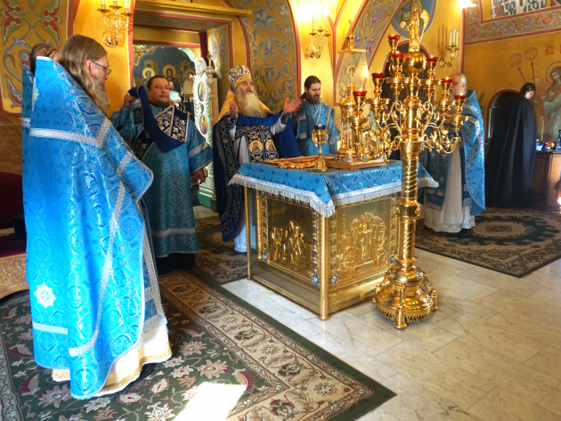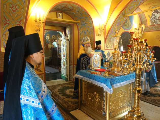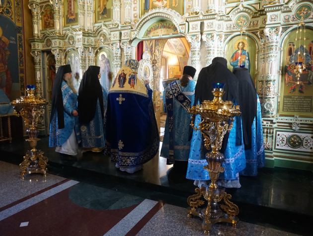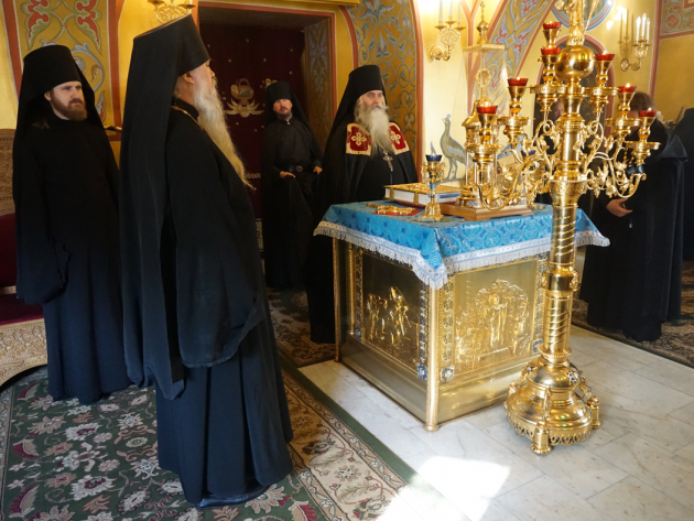 После крестного хода братия монастыря во главе с игуменом обители архимандритом Тихоном (Затёкиным) под звон монастырских колоколов проследовала в братскую трапезную, где после трапезы был совершён чин о Панагии.