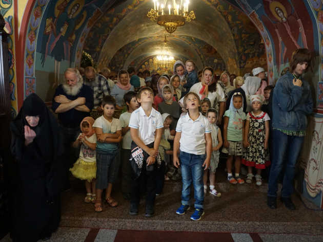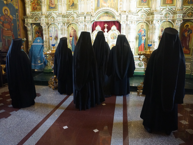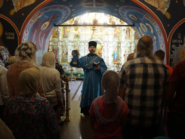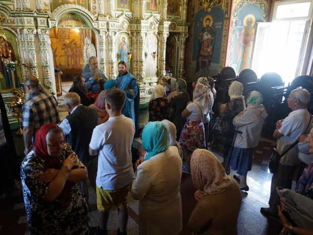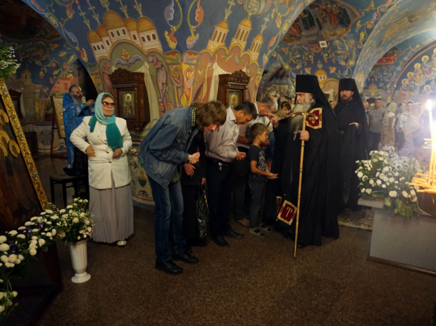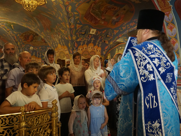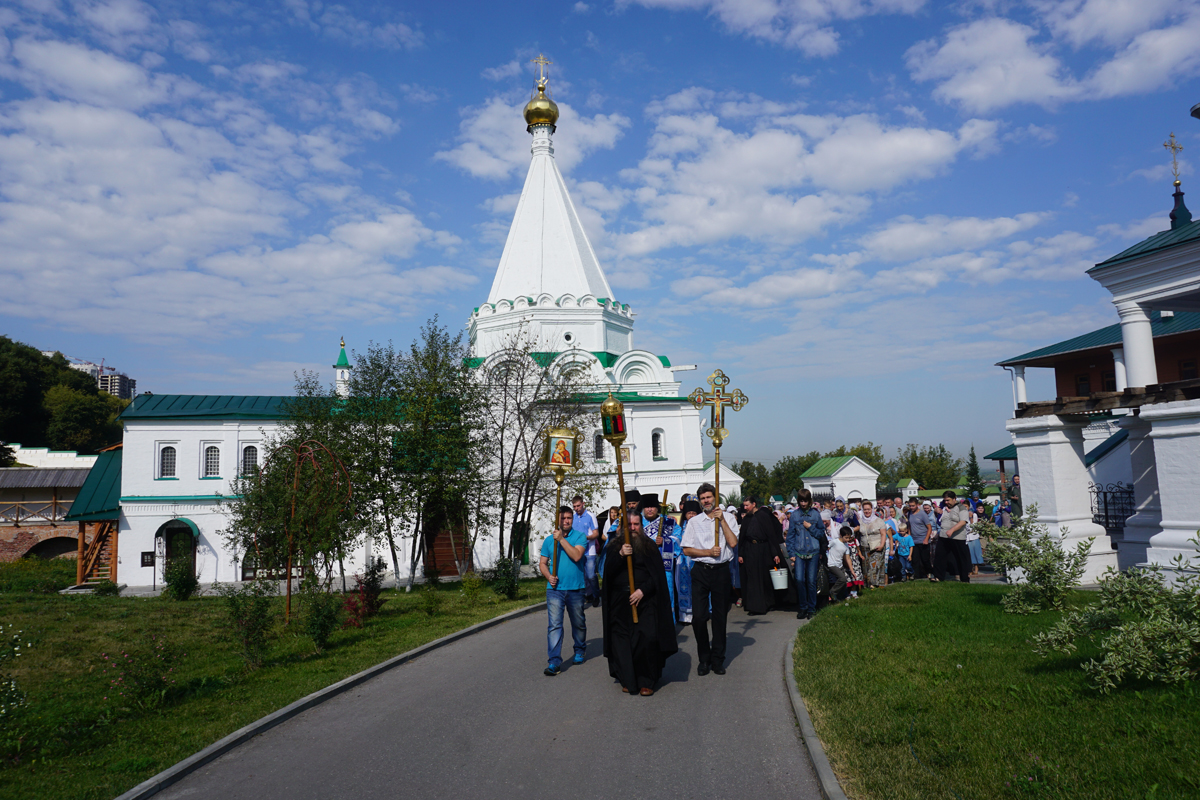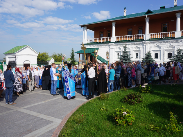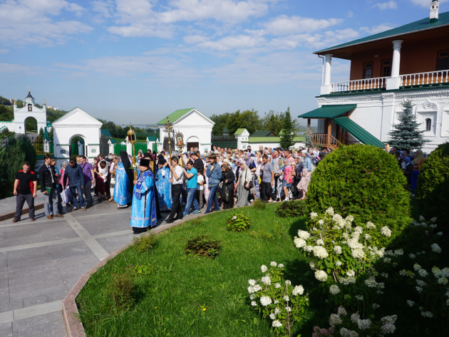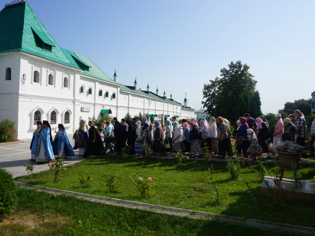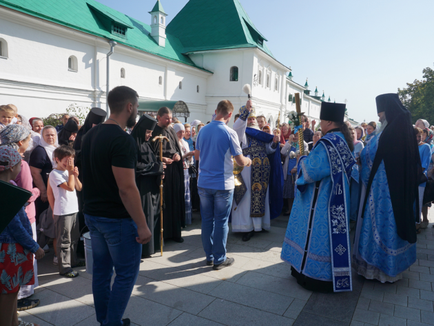 Под колокольный звон многочисленные прихожане и паломники обошли вокруг храмов обители, где во время остановок по четырём сторонам света были окропляемы святой водой. При возвращении в Успенскую церковь было совершено вместе с народом песнопение «Царице Моя Преблагая…».