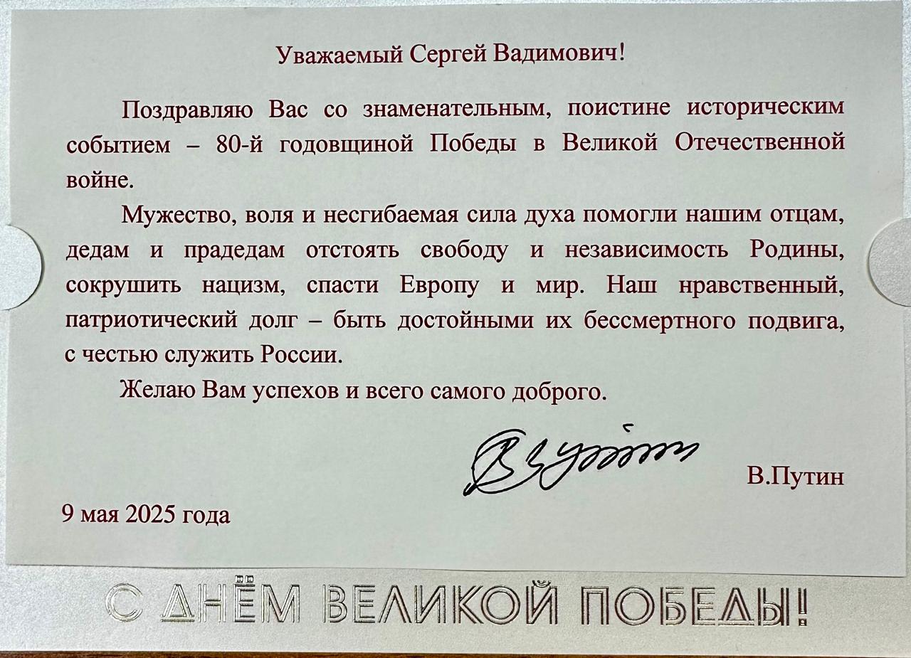 В канун 80-летия Великой Победы Президент Российской Федерации Владимир Путин направил поздравление в адрес экс-премьера России, Председателя ИППО Сергея Степашина по случаю государственного праздника.