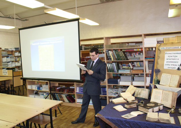 Заведующая сектором библиотеки института Наталья Калинина представила собравшимся интересную выставку книг из редкого фонда библиотеки, а также выписываемых институтом периодических изданий, посвящённых современной жизни Русской Православной Церкви. Она призвала студентов активнее пользоваться услугами библиотеки, больше читать духовно-нравственной, познавательной и научной литературы.