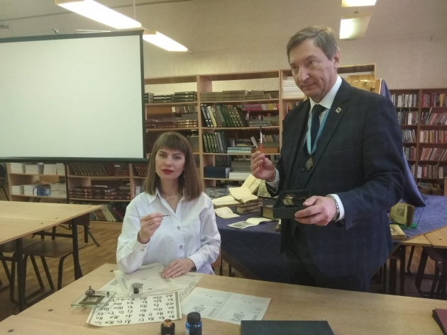 Студенты смогли полистать пожелтевшие страницы церковных книг трёхвековой давности, рассмотреть барочные гравюры елизаветинского и екатерининского времени, изучить филиграни, заставки, витиеватые буквицы и владельческие надписи, сделанные железо-галловыми чернилами. Они с интересом пробовали писать славянские буквы и слова анилиновыми чернилами и старинными перьями.