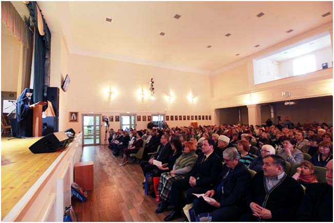 На пленарном заседании в Паломническом центре обители от лица Высокопреосвященнейшего Евсевия, митрополита Псковского и Порховского, Свято-Успенской Псково-Печерской обители священноархимандрита, отец наместник приветствовал участников, а затем сделал доклад об истории Чтений и о проблемах духовного образования.