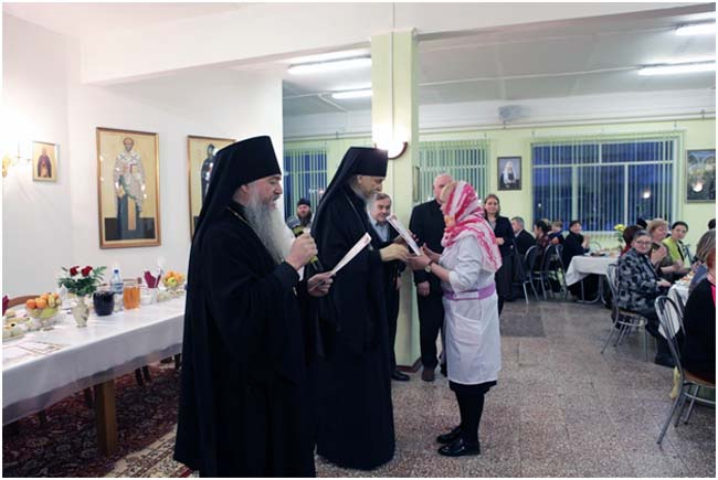 На праздничном ужине наместник архимандрит Тихон вручил благодарственные письма тем, кто много лет организовывает подготовку и проведение Корнилиевских чтений.