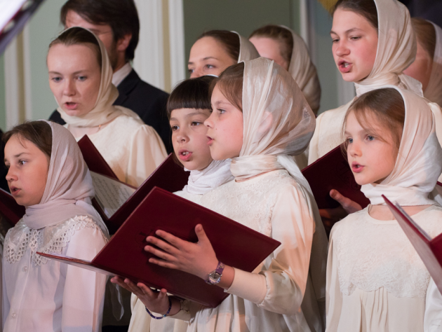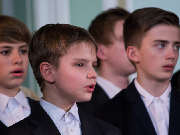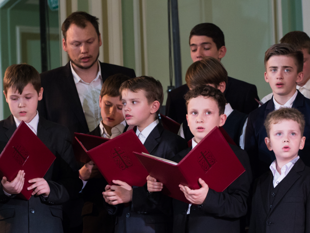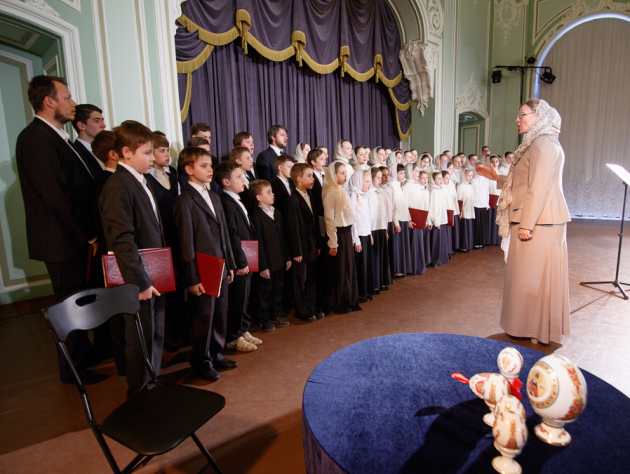 В исполнении детско-юношеского хора прозвучали произведения, посвящённые хозяевам дворца: обработка темы Третьей симфонии Иоганнеса Брамса на слова протоиерея Андрея Логвинова «Матушка Великая княгиня» и народная песня «Княже Сергие, жертва чиста».