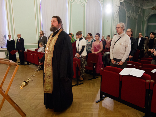 Перед концертом настоятель храма иконы Божией Матери «Всех Скорбящих Радость» в Тосно иерей Сергий Рысев отслужил заупокойную литию и молебен. Затем детско-юношеский хор преподобного Иоанна Дамаскина Владимирского собора под управлением Ирины Болдышевой исполнил стихиры и тропарь Пасхи.