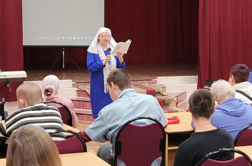 Преподобномученицу Великую княгиню Елисавету Феодоровну вспоминали и на литургии в храме святой блаженной Ксении при Доме-интернате, и в актовом зале этого учреждения, где собрались живущие в нем прихожане. В этот день для них демонстрировался фильм, звучали песни и стихи, посвященные памяти второго Председателя ИППО.