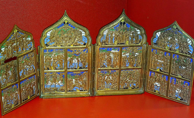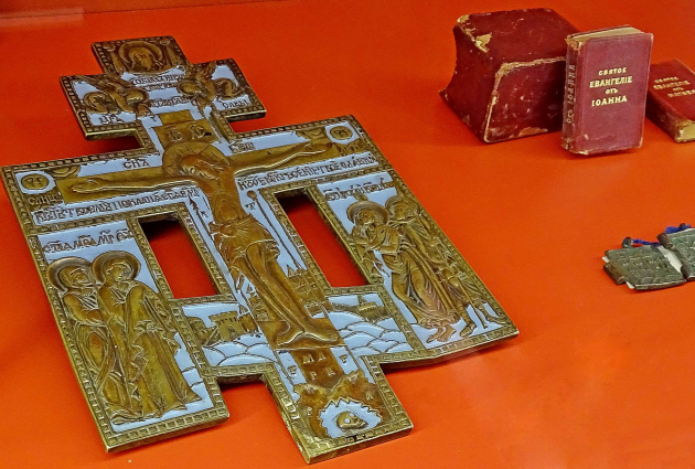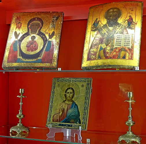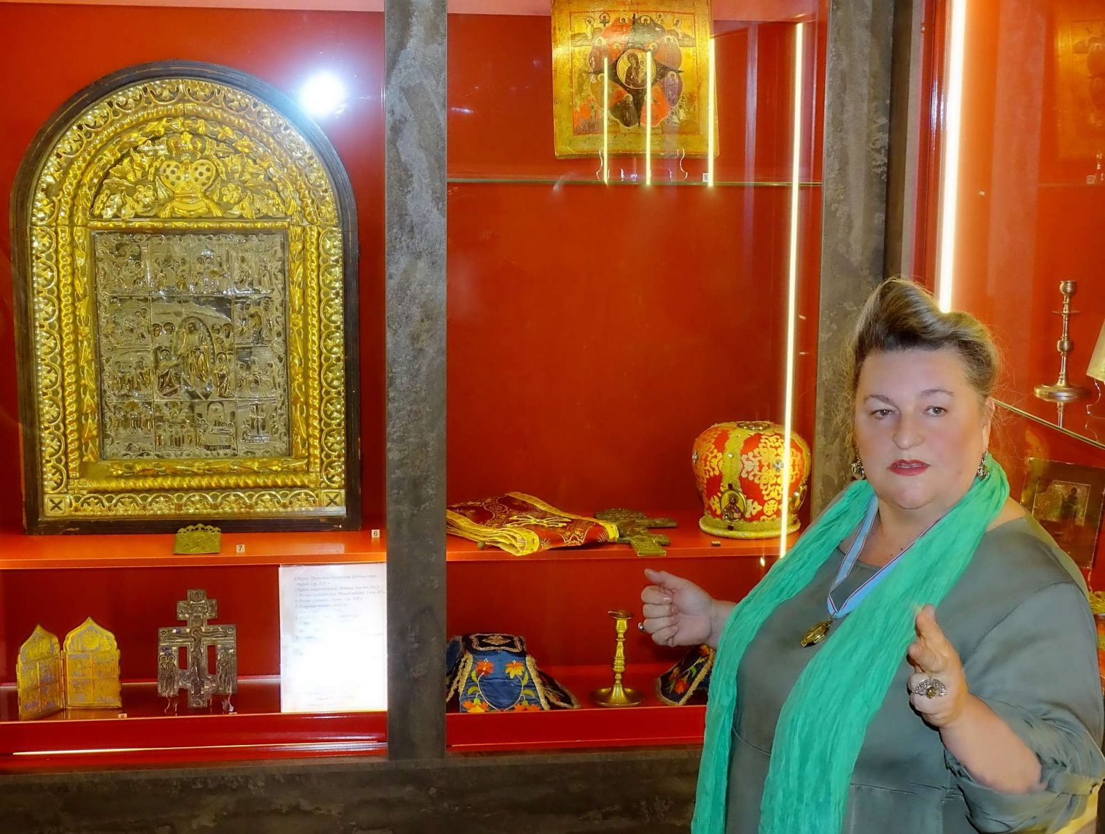 Ирина Талдыкина провела экскурсию, рассказав, что на выставке представлено более 100 уникальных экспонатов XIX – нач. XX веков из фондовой коллекции музея - это иконы на дереве и металле, старопечатные книги, богослужебные предметы, облачение священнослужителей. Коллекция икон представлена, в основном, работами XIX века. Произведения иконописцев этого периода относятся к числу ярких и самых массовых явлений национальной культуры. Иконы писали в монастырях и деревенских избах, в таежных скитах и учебных классах Российской академии художеств. Одни из них созданы по заказам, многие приобретались для семейных молелен и божниц деревенских изб.