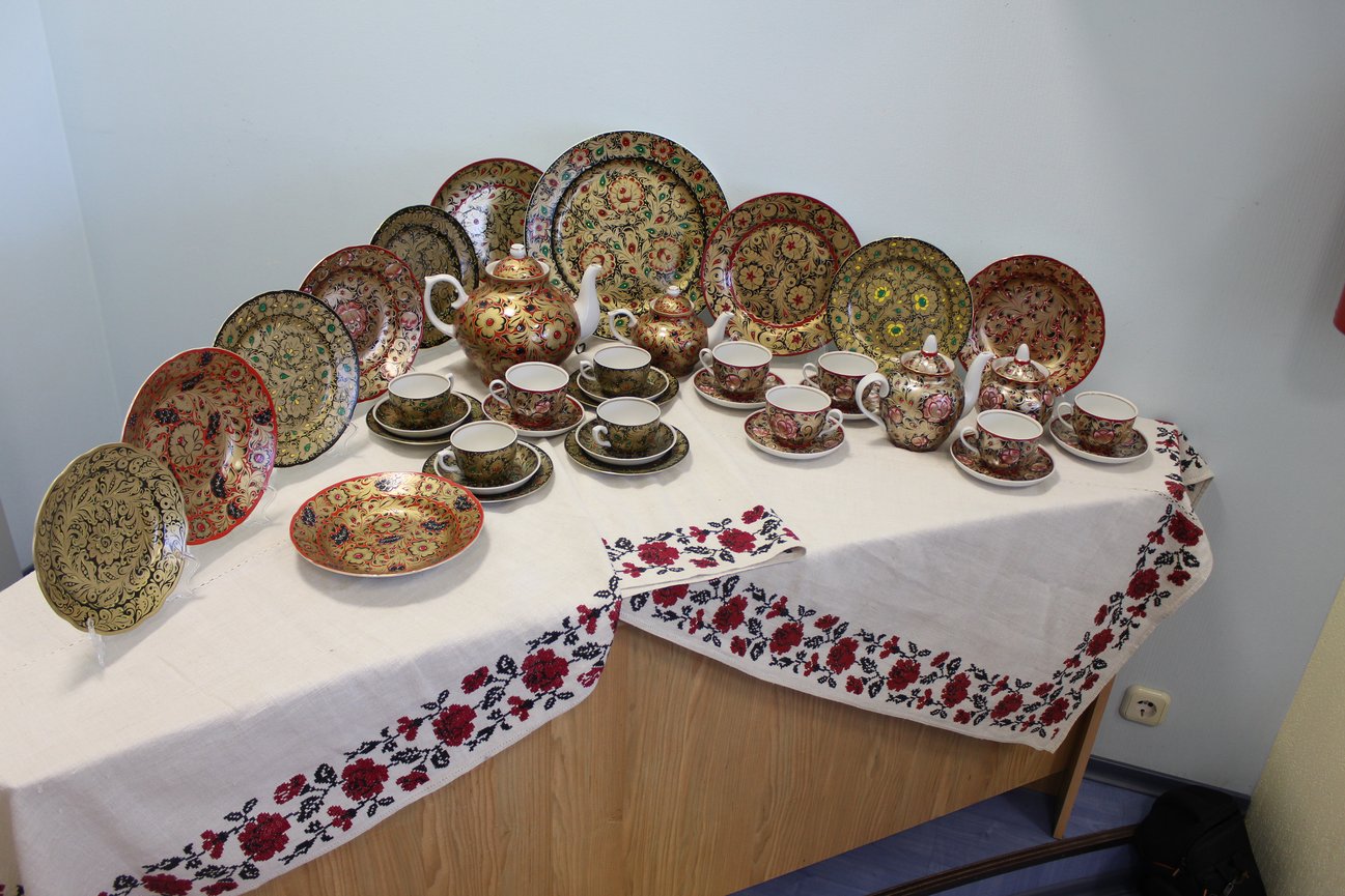 Участникам форума также была представлена выставка расписной фарфоровой посуды в славянском стиле.