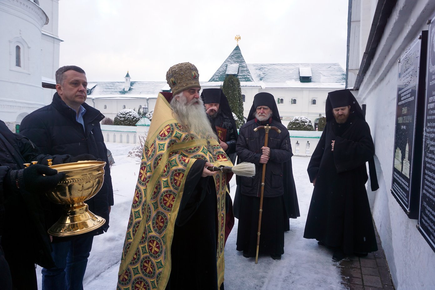 В присутствии братии Вознесенского Печерского монастыря, действительных членов Нижегородского отделения палестинского общества, а также членов Московского областного отделения, архимандрит Тихон прочитал молитву и окропил памятную доску святой водой.
