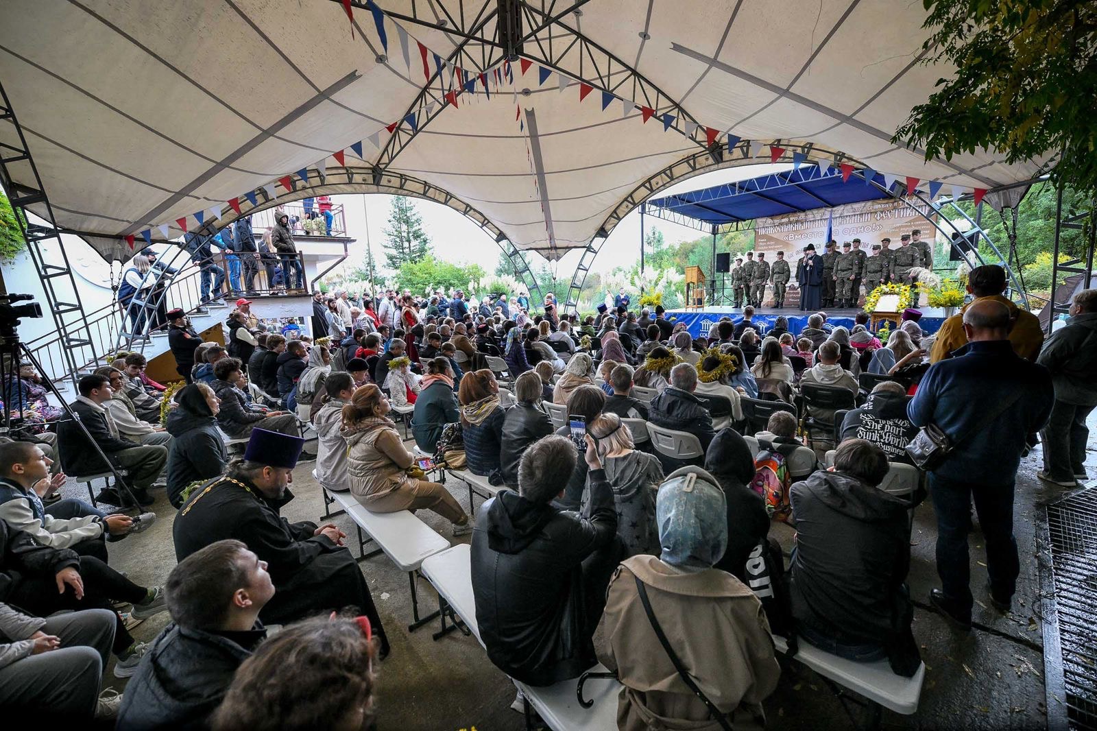 Перед началом фестиваля «Вместе за одно!» в храме св. царя-страстотерпца Николая II в селе Каштаны была отслужена Божественная литургия. Затем состоялось чаепитие и началась регистрация.