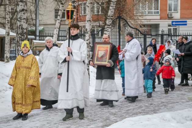 По окончании Божественной Литургии вокруг храма прошел крестный ход, который возглавил настоятель Храма Благовещения Пресвятой Богородицы протоиерей Александр Солдатенков. В крестном ходе участвовали дети, несшие изображения Вифлеемских звезд.