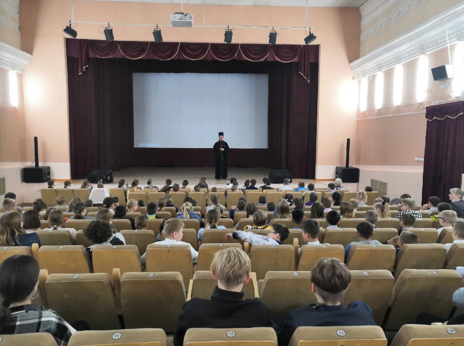 Перед просмотром мультфильма к собравшимся с приветственным словом обратился член Курганского отделения ИППО, руководитель Отдела по делам молодежи и миссионерскому служению Шадринской епархии иерей Константин Стерхов. Он рассказал, что в 1981 году имена святых монахов-воинов, о которых будет идти речь в мультипликационном фильме, были включены в состав Собора Радонежских святых. Их память было определено отмечать накануне праздника Рождества Богородицы (дня Куликовской битвы) – 20 (7) сентября, поэтому и было принято решение совершить показ мультфильма именно в этот день. Отец Константин пояснил, что мультфильм Станислава Подивилова «Пересвет и Ослябя», затрагивает весьма важные духовно–нравственные проблемы человека времен ордынского нашествия, а эти проблемы можно сопоставить также и с прочими войнами и военными конфликтами, в которых принимала участие наша страна как столетия назад, так и в недавнем прошлом. Отец Константин в своем слове подчеркнул, что особенно сегодня, когда Россия проводит специальную военную операцию на Украине, поднятие вопросов патриотизма и духовно-нравственного воспитания важны для подрастающего поколения.
