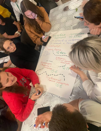 В рамках лагеря состоялась встреча «Развитие молодежного паломничества и туризма» на базе Культурно-спортивного комплекса «Алексино» с представителями администрации Волховского района, Колчановского сельского поселения и владыкой Мстиславом, епископом Тихвинским и Лодейнопольским, председателем Попечительского совета РО.