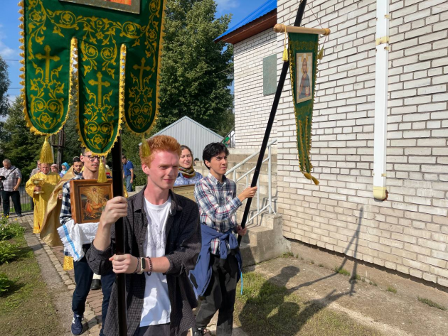 В воскресенье участники лагеря приняли участие в Божественной литургии. Богослужение прошло в храме великомученика и целителя Пантелеимона. Возглавил его настоятель храма, руководитель Ленинградского областного отделения ИППО священник Геннадий Титов.
