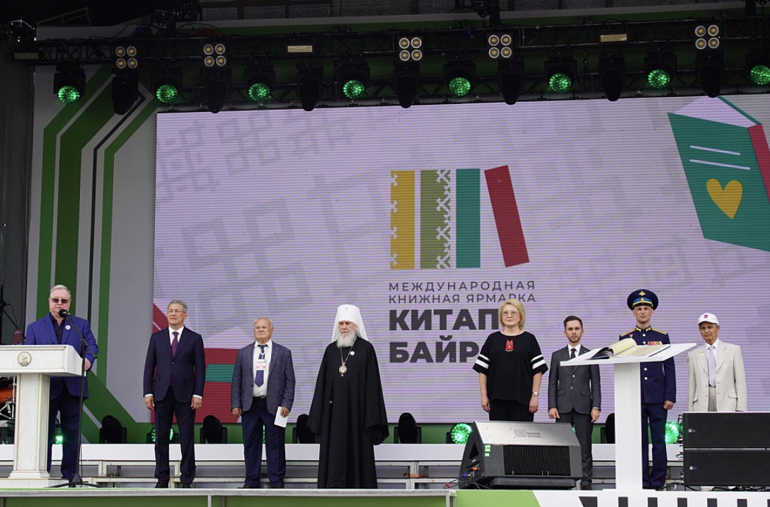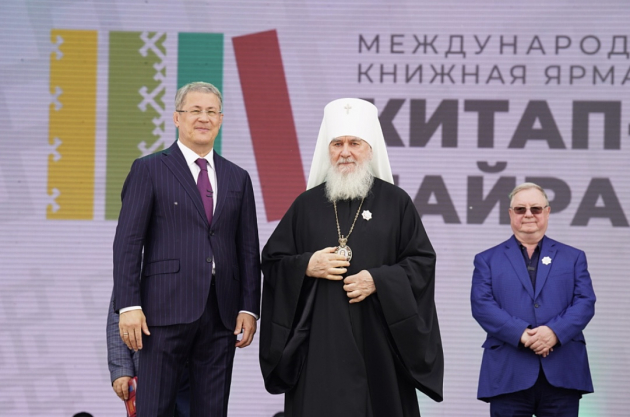 С открытием фестиваля «Китап-байрам» участников и гостей мероприятия также поздравили Митрополит Калужский и Боровский Климент, участник СВО, поэт Сергей Лобанов и народный поэт Башкортостана Кадим Аралбай.