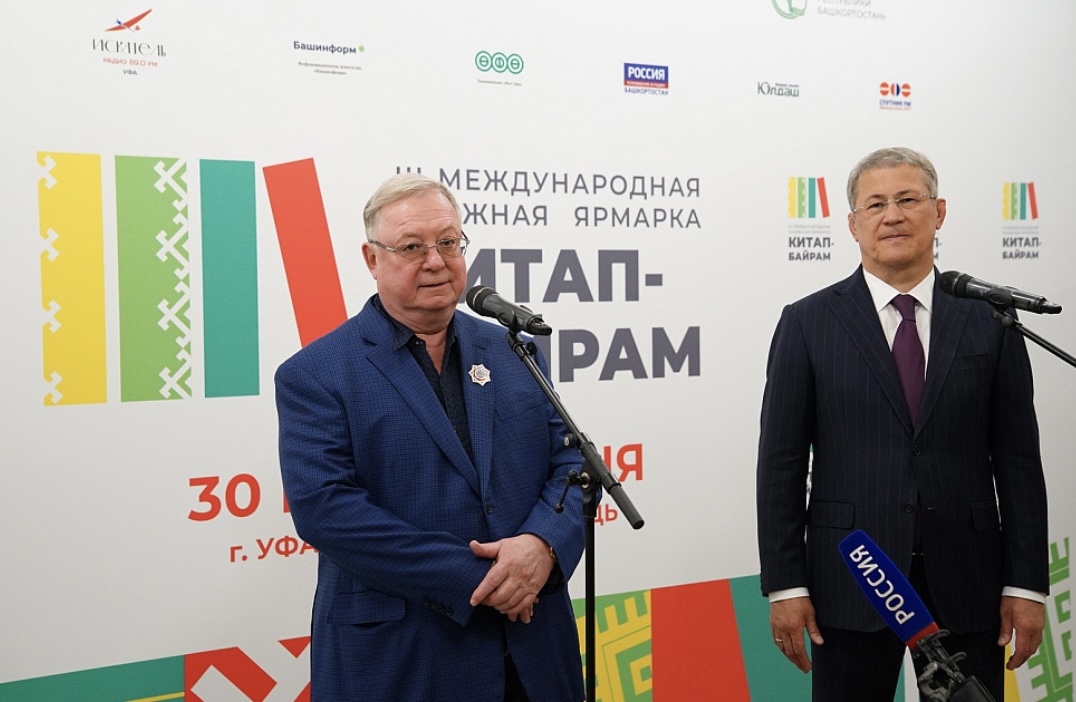 В беседе с журналистами Глава Башкортостана и президент Российского книжного союза поделились впечатлениями от посещения площадок книжной ярмарки «Китап-байрам».