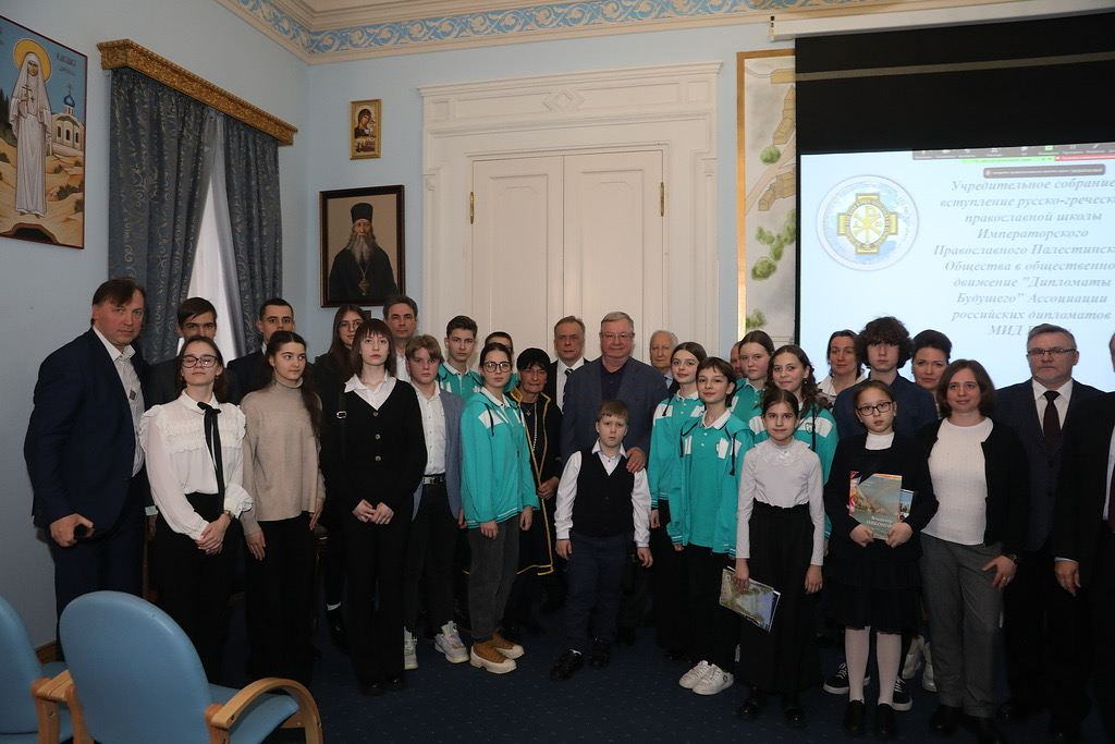К дружной дипломатической семье присоединилась русско-греческая православная школа в Императорском Православном Палестинском Обществе. «Дипломатия – это великая наука полученные знания пригодятся вам в любой профессии и вообще в жизни: умение общаться – это одно из ценнейших человеческих качеств», - сказал Борис Медведев.