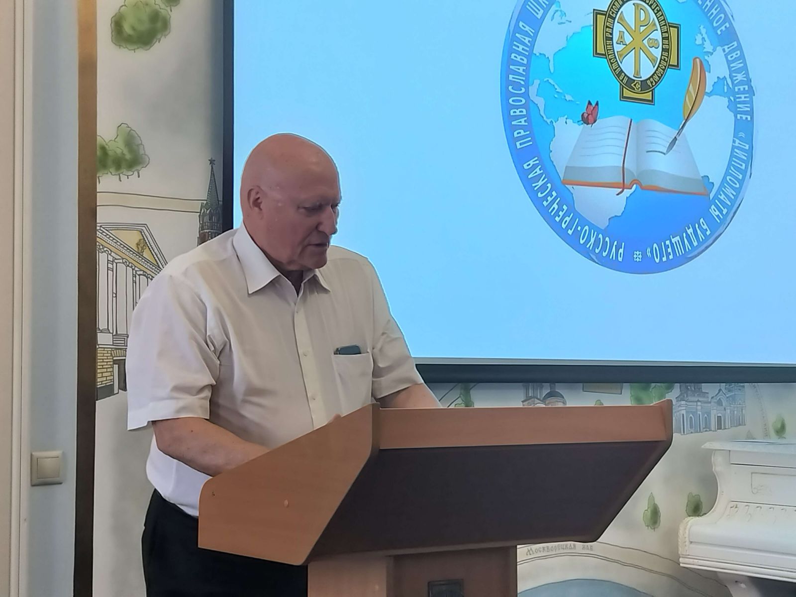 Председатель Общества также дал высокую оценку русско-греческой православной школе ИППО, отметил важность истории России и мировой истории. Сергей Вадимович поздравил учащихся с вступлением в Детское Общественное Движение «Дипломаты Будущего» МИД РФ, где дети могут выбрать профессию со знанием языка и занятием международной деятельностью. Поздравил с окончанием учебного года и пожелал успехов в новом учебном году.