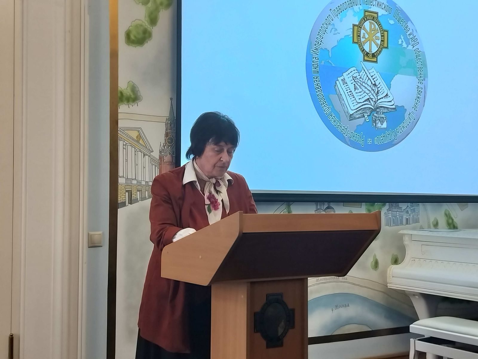 Далее выступила ведущий преподаватель русско-греческой православной школы в ИППО Наталья Георгиевна Николау, она рассказала о методике обучения греческому языку, о своих учебниках для изучения греческого языка (7 томов), изданных Свято-Троицкой Сергиевой Лаврой в 2024 году. По данным учебникам и ведется обучение в русско-греческой православной школе ИППО, учебники являются уникальным методическим пособием по преподаванию греческого языка, в том числе истории Греции истории России, истории православия, которые связывают вместе все эти три темы.