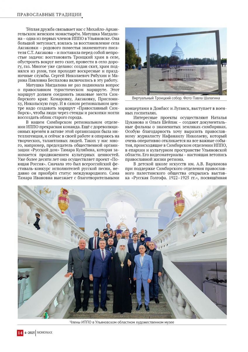 Августовский «Мономах» станет ценным источником сведений о плодотворной деятельности Императорского Православного Палестинского Общества на Симбирской земле и будет интересен широкому кругу читателей.