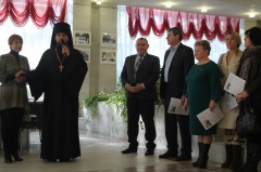 Экспозицию открыл секретарь Мелекесского епархиального управления иеромонах Прокл (Бойко), который был принял в этот день в ряды Императорского Палестинского Общества.