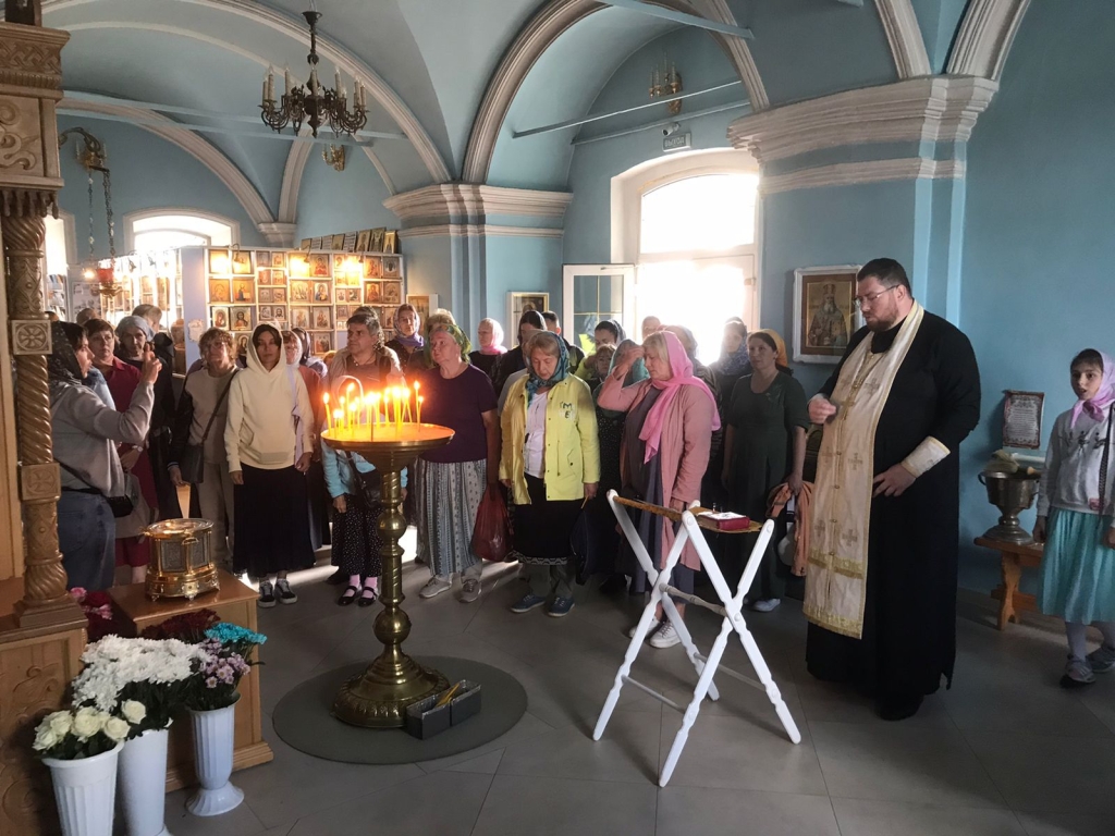 Настоятель Успенского храма иерей Алексий Лысиков совершил молебен перед ковчегом с частицей мощей блаженной Матроны Себинской (Московской) и окропил всех молившихся святой водой.