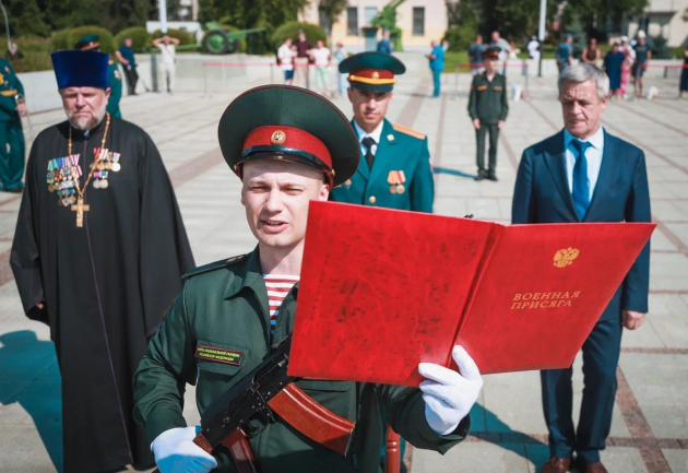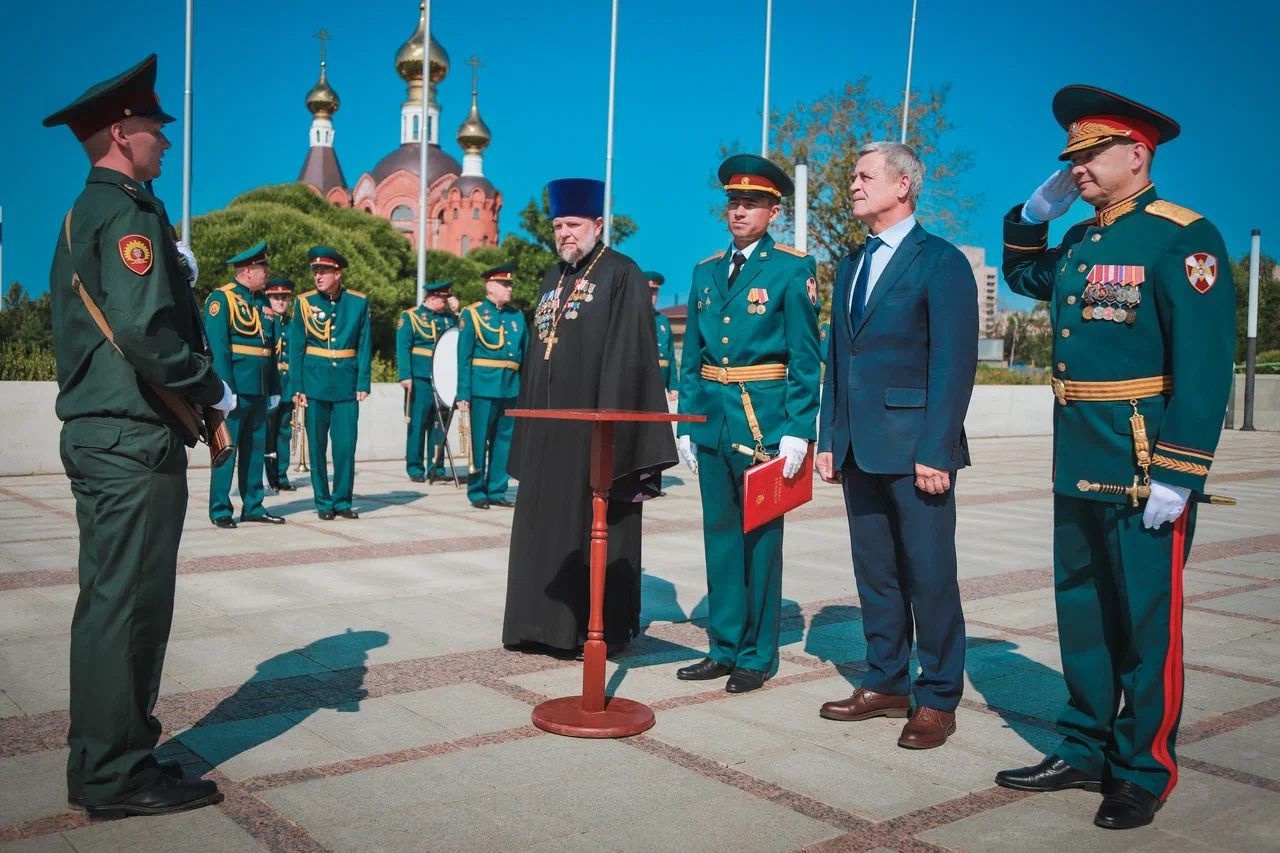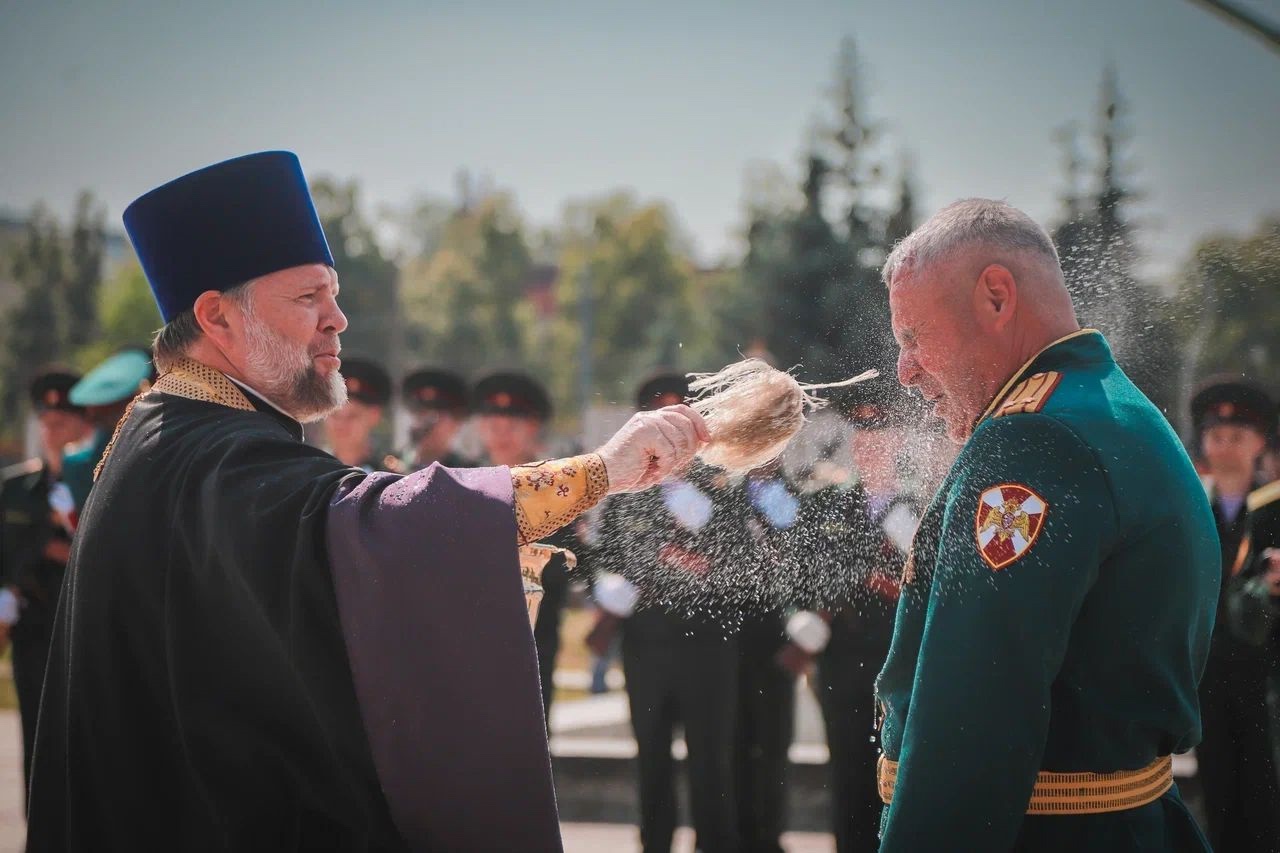 По старой воинской традиции, протоиерей Николай Денисенко прочитал молитву "о русском воинстве" перед строем, после чего по православному обычаю окропил святой водой строй будущих солдат войск правопорядка. В завершение мероприятия состоялось возложение венков и цветов к Братской могиле "Рубежа". Этот торжественный акт стал не только данью памяти героям Великой Отечественной войны, но и напоминанием о многовековых традициях русского воинства, берущих начало от подвигов Александра Невского. В год, объявленный Президентом Российской Федерации Владимиром Владимировичем Путиным Годом защитника Отечества, церемония приобрела особый смысл, подчеркнув преемственность поколений и непоколебимые устои служения Отечеству уже современных поколений воинов.