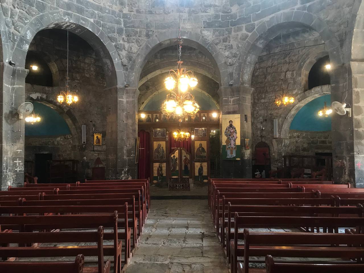 Первая остановка была сделана в городе Изра, где сохранился храм святого великомученика Георгия Победоносца, основание которого относится к 515 году.