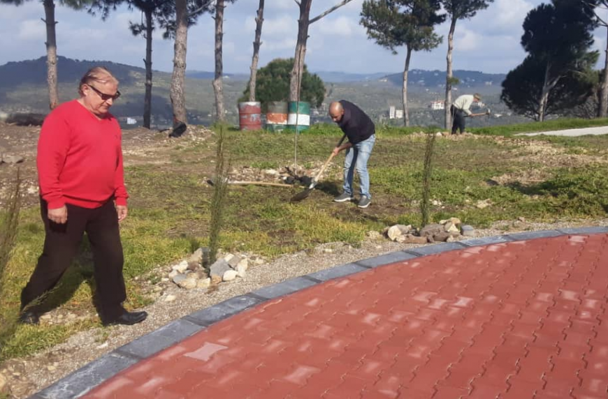 Проходит разбивка сада на части участка, прилегающего к церкви Богородицы — месту паломничества христиан и мусульман. Идет уборка территории от камней, ветвей и мусора перед открытием сада. Рабочие ведут посадки вечнозеленого цветущего кустарника лигуструма, используемого в Сирии в качестве растительной изгороди.